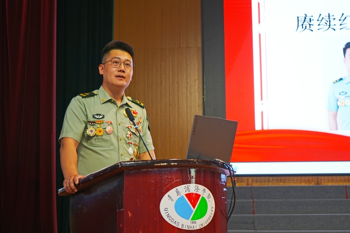 5月27日,青岛滨海学院在学校大礼堂举办“赓续红色血脉,矢志报国强军”思政大讲堂,由学校“外聘辅导员”“军事训练团指导教师”宋杰同志担任主讲,通过鲜活军旅事迹弘扬爱国主义精神,落实学校“大思政课”建设要求,深化“铸魂育人”工程实效。大一学生代表千余人现场聆听报告。